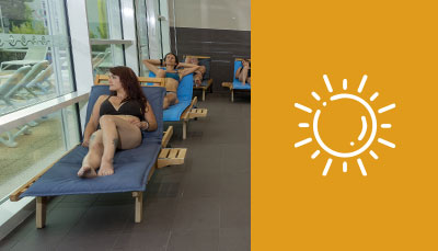 Installez vous confortablement dans notre salle de repos intérieure et profitez d'un bain de lumière à n'importe quelle heure de la journée.