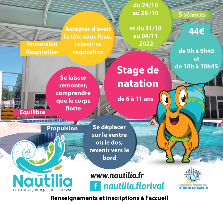 NAUTILIA organise des stages de NATATION pour les enfants de 6 ans à 11 ans du 24 octobre au 04 novembre 2022. ALORS N'ATTENDEZ PAS, INSCRIVEZ VOUS !!!!!!